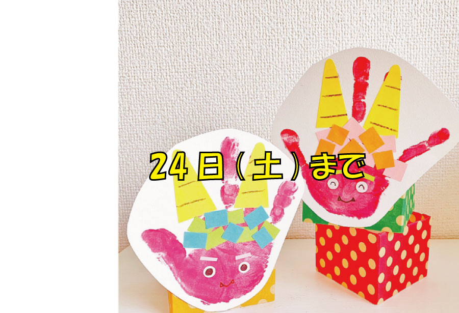 中津川市東児童館にて 24日(土)まで 10:00~11:45、14:00~16:30 手形を鬼にして、豆入れBOXを作ろう! ※...